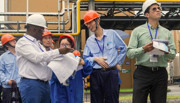 7月5日上午,OPCW視察組和國家代表、省市陪同人員在聽取核查前情況介紹后,共同前往公司生產(chǎn)區(qū)域進(jìn)行了現(xiàn)場核查。視察組一行在察看企業(yè)總平面布置之后,分別對生產(chǎn)裝置、工藝流程等作了詳細(xì)了解,核實(shí)了企業(yè)生產(chǎn)經(jīng)營中的相關(guān)記錄、原始臺賬、報(bào)表等,公司陪同人員客觀、專業(yè)的回答了核查組提出的各類問題。